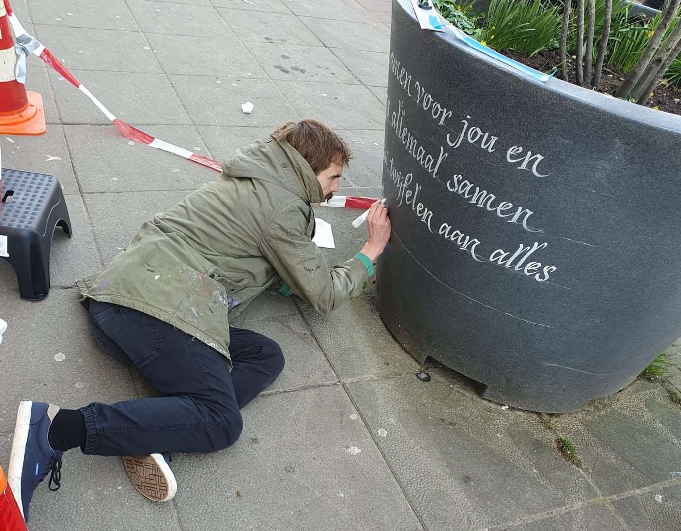 Tijdens deze editie ‘Poëzie op de stoep’ brengt Granate nu de poëzie op de bloempotten aan de Bos en Lommerweg in Amsterdam West.